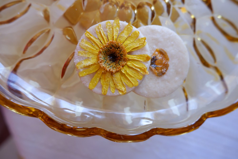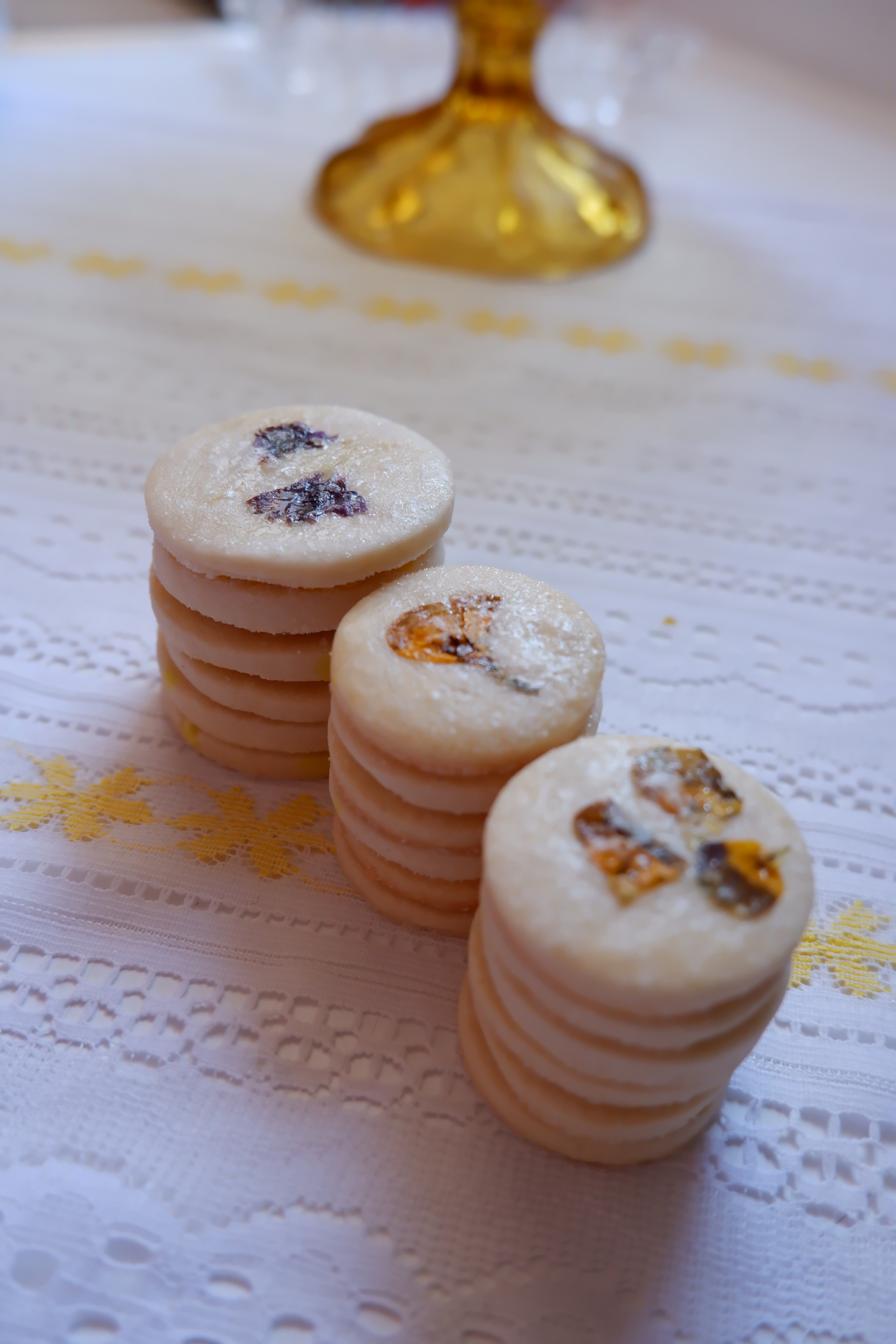 Today I am sharing a shortbread cookie recipe topped with edible flowers. In order to prepare the flowers for topping the cookies, you will have to press them first.