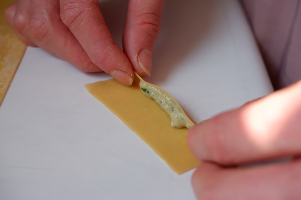 Once you are finished with rolling and filling, you can cook the pasta immediately or store for later use.